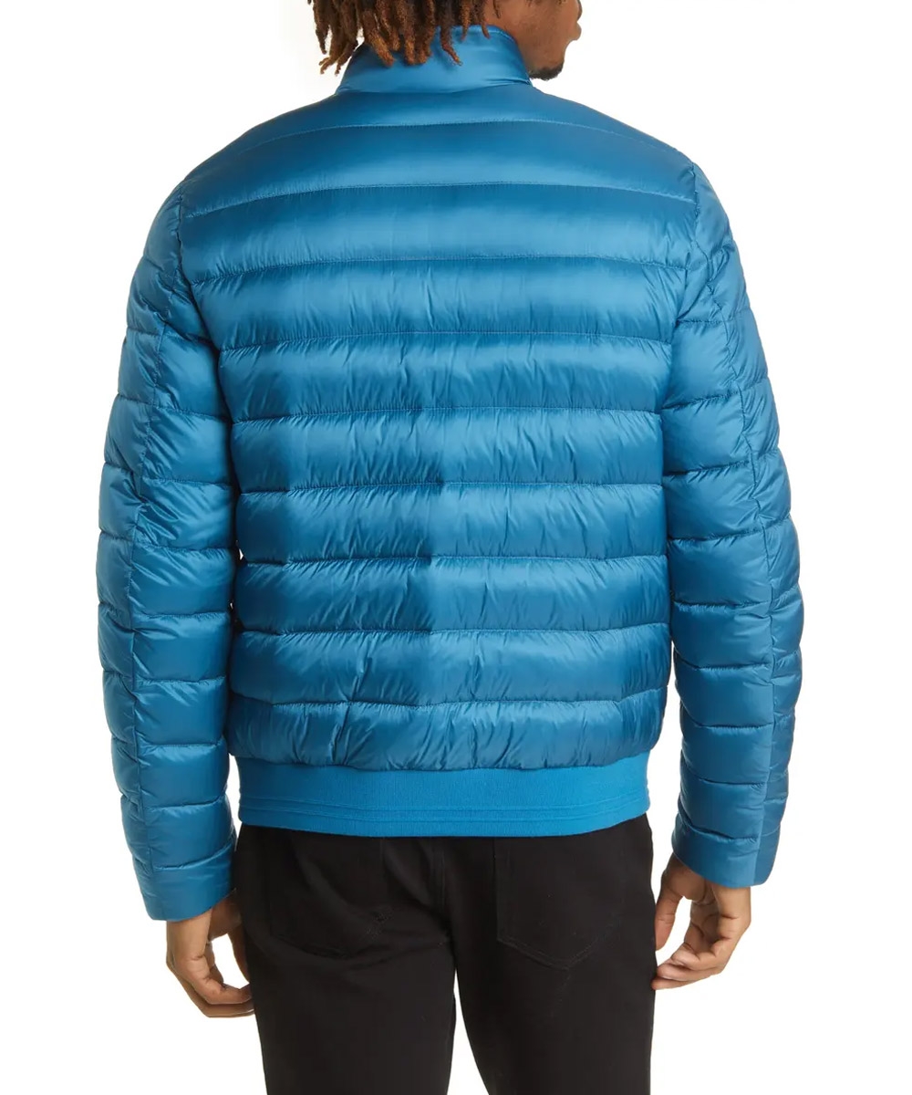 • This nylon puffer jacket has the role of blocking out the cold; It contains advantageous features such as rib knit storm cuffs and a fleece lined stand collar;
